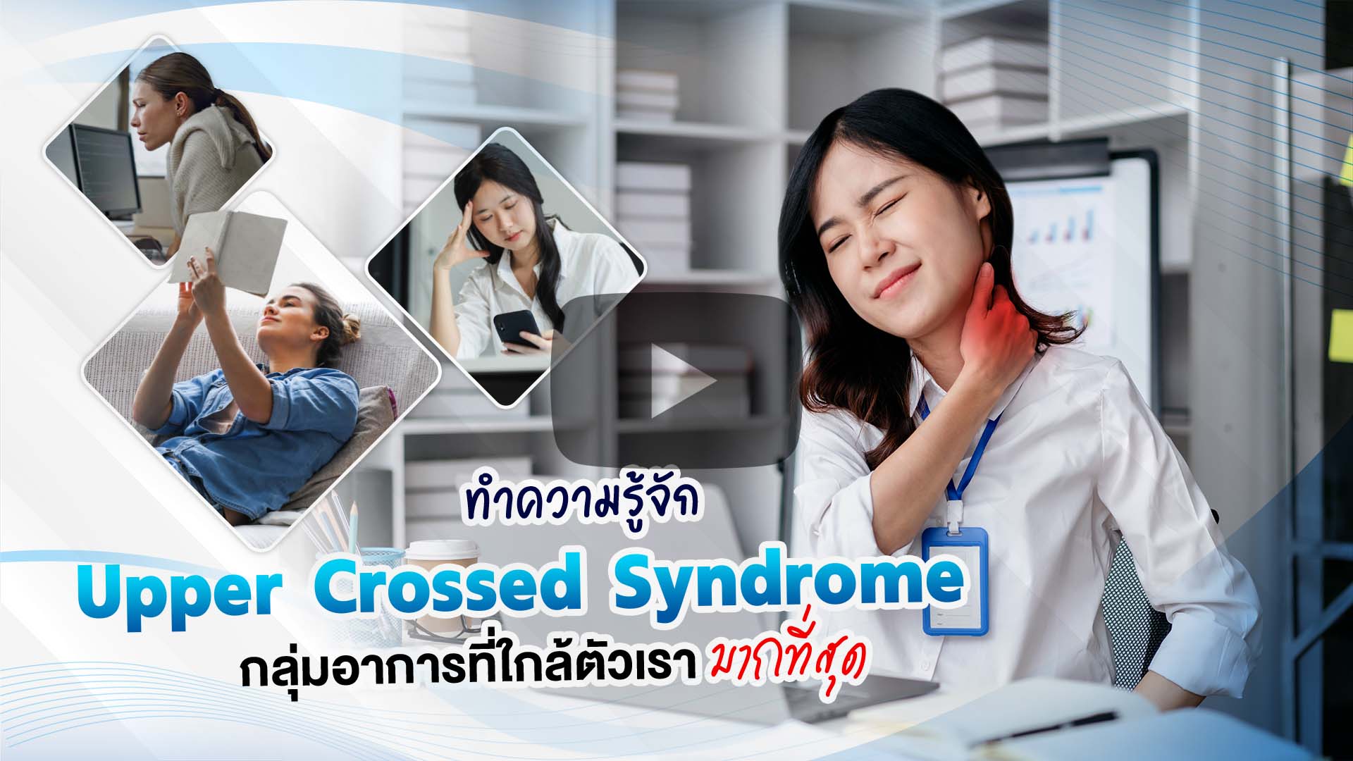 Upper Cross Syndrome คือ ภาวะที่เกิดจากการใช้กล้ามเนื้อฝั่งใดฝั่งหนึ่งมากเกินไป จนเกิดความไม่สมดุลขอ…