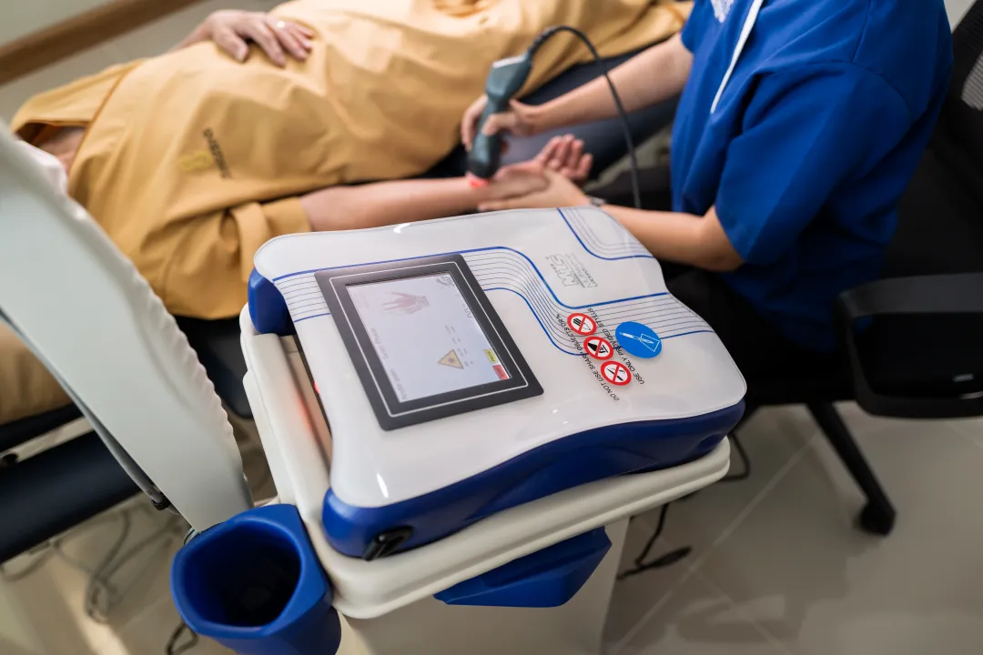 ใช้คลื่นเหนือเสียงความถี่สูงเพื่อสร้างความร้อนในเนื้อเยื่อชั้นลึก ลดปวด ลดอักเสบ และส่งเสริมกระบวนการซ่อมแซมของเนื้อเยื่อ